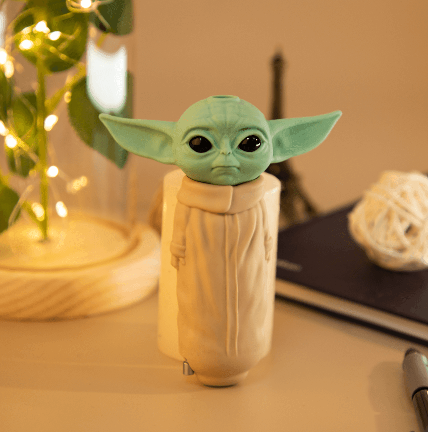 This Baby Yoda pipe is incredibly durable and virtually unbreakable. Its unique disassembled design ensures effortless cleaning, making maintenance a breeze. With its compact and lightweight construction, you can conveniently carry it with you wherever you go. Whether you're a Baby Yoda enthusiast or looking for a fantastic gift for a friend, this Silicone Hand Pipe is an excellent choice. Immerse yourself in the whimsical world of The Mandalorian with the Baby Yoda Pipe!