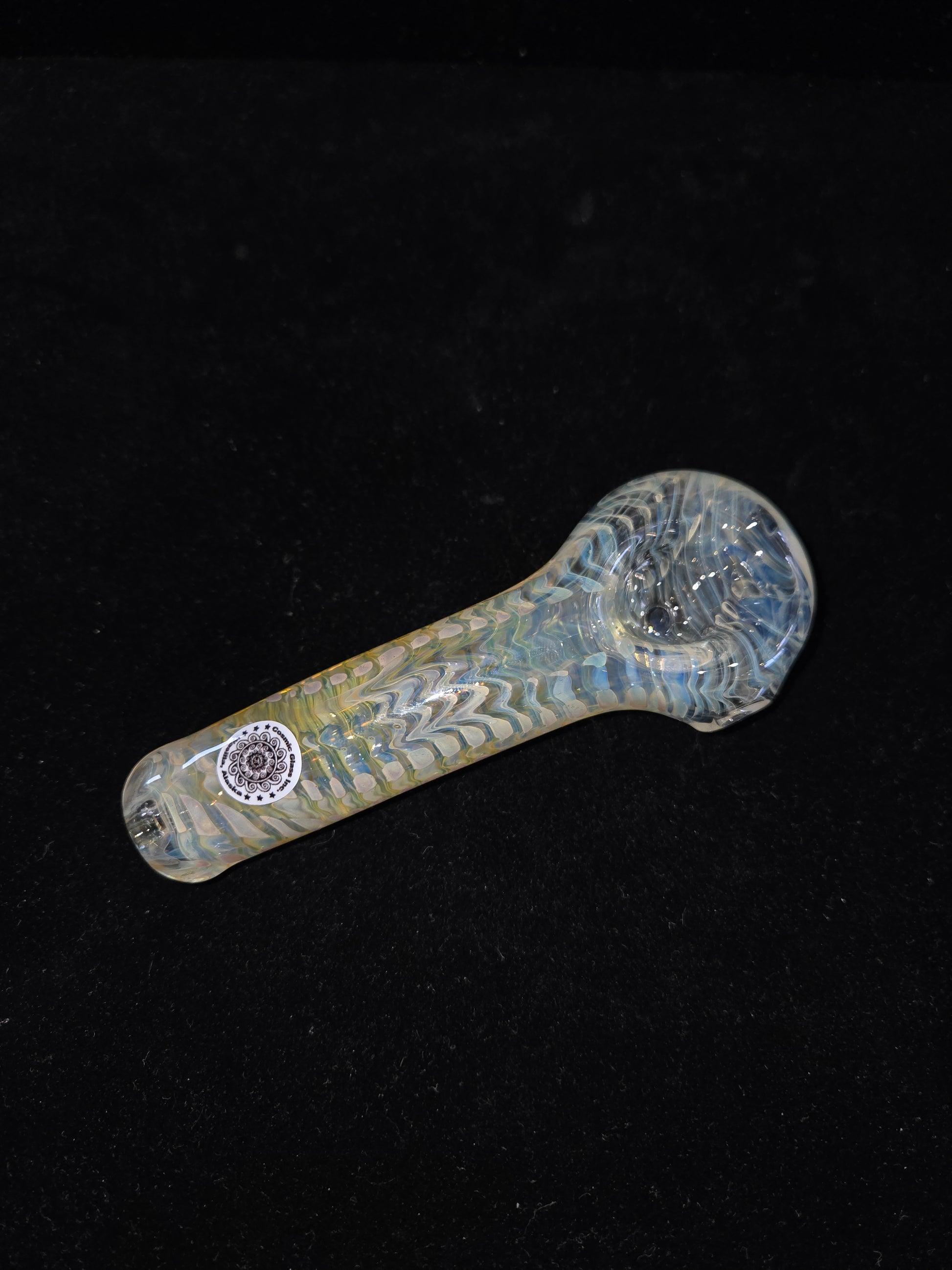 This is Cosmic Glass's last batch of pipes made in 2025, he no longer makes pipes after 30 years of glass blowing! Get your hands on a 1-of-a-kind handblown pipe made in Alaska. All with unique silver and gold fuming and/or color blends. Don't worry, Cosmic Glass still blows glass, check out our Cigar Accessories and more!