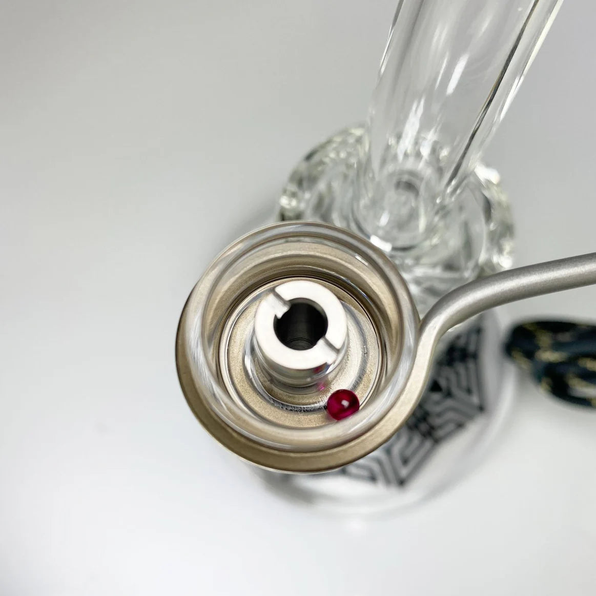 When used with the MiniNail Titanium Carb Cap or Glass Cyclone Cap, the spheres spin in a circular motion. The spinning inside the quartz bucket allows for better function especially at low temperatures. This is because the concentrate can become more thinly dispersed.