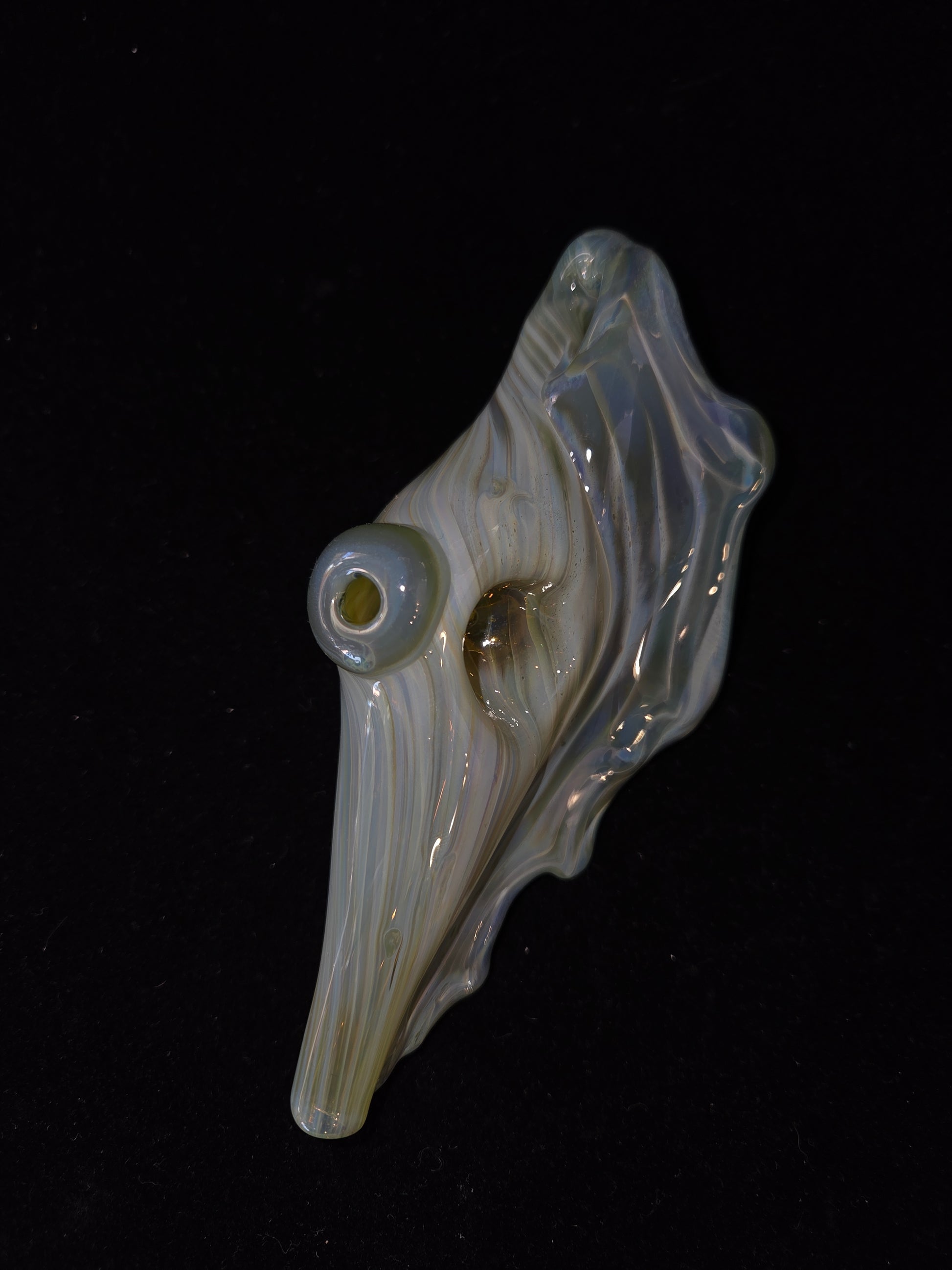 Beautiful borosilicate glass seashell pipes that can be worn as pendants.